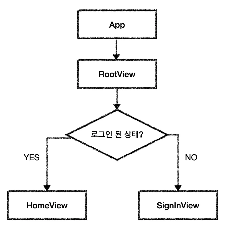 RootView는 현재 로그인 상태에 따라 HomeView 또는 SignInView를 보여주도록 합니다.