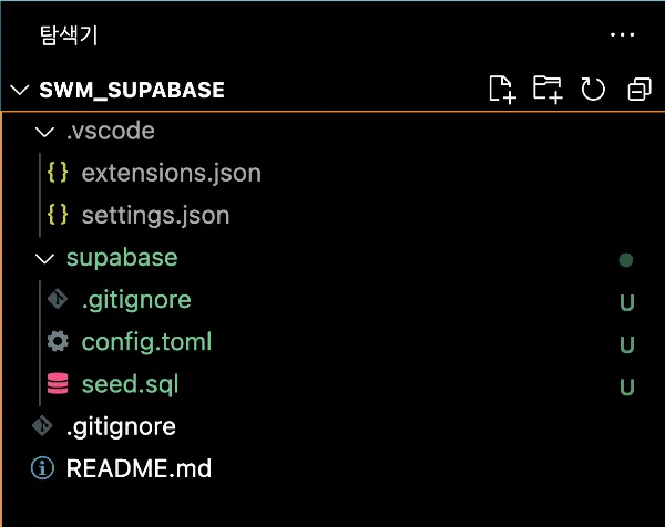 Supabase Backend 코드를 작성할 디렉토리에서 아래 명령어로 Supabase 프로젝트를 초기화 합니다.