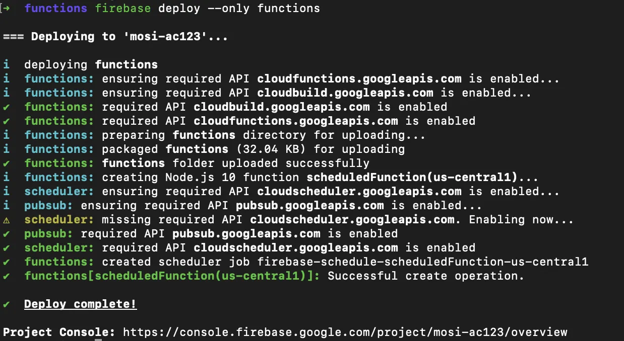 종량제도 Blaze 로 바꾸고, firebase console 로 최신으로 업뎃 후 성공