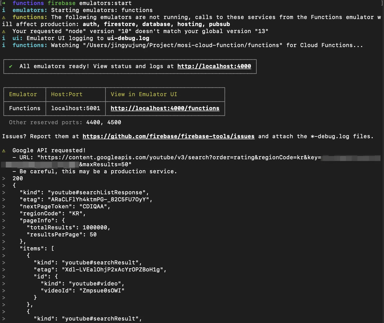 예제에서 Key 는 수정해주세요. (유튜브 API Key 발급받기)