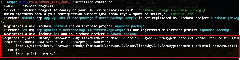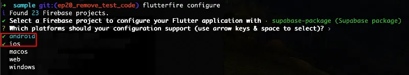 샘플앱 디렉토리에서 flutterfire CLI를 활용해 Firebase 설정