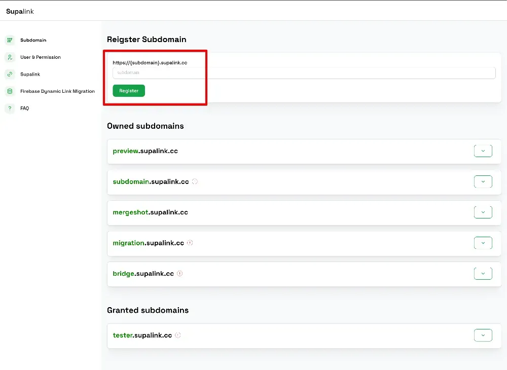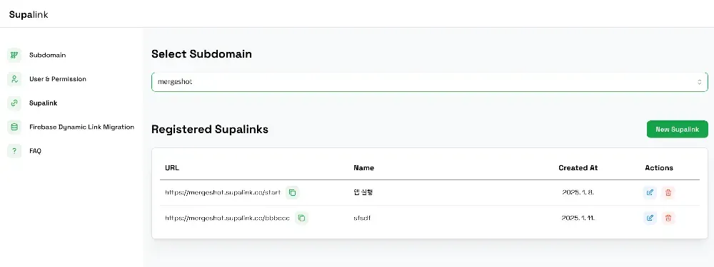 5. 서브도메인 하위에 Supalink를 생성합니다.