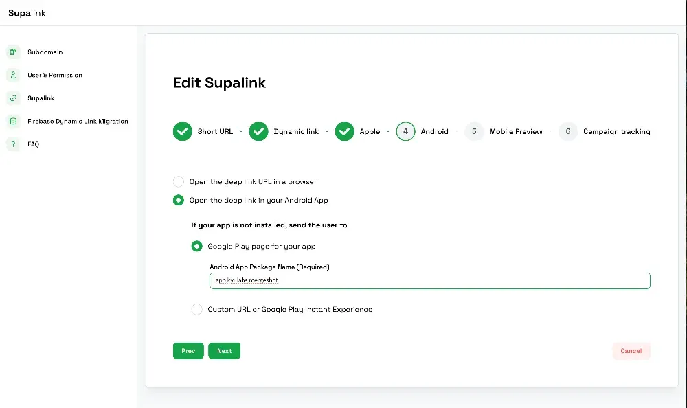 2. Supalink를 생성하는 화면. (Firebase Dynamic Link UI/UX와 동일합니다.)