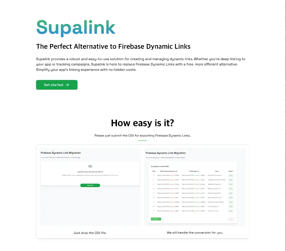 위와 같은 주요 요구사항을 바탕으로 여러 대안을 검토한 결과, Supalink를 먼저 사용해 보기로 결정했습니다. Supalink은 무료 플랜을 제공하며, Firebase Dynamic Link에서의 마이그레이션도 지원하기 때문입니다. (무료이니 먼저 한 번 사용해 봅시다!)