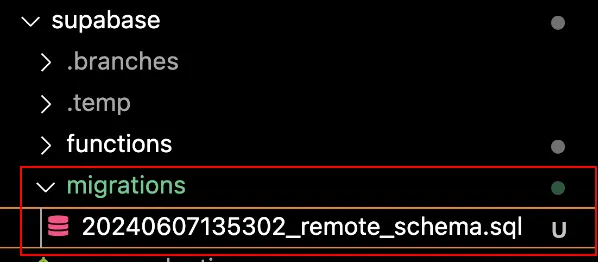 supabase 디렉토리 하위에 migrations디렉토리가 추가되며 Schema 변경사항이 sql 파일로 추가됩니다.