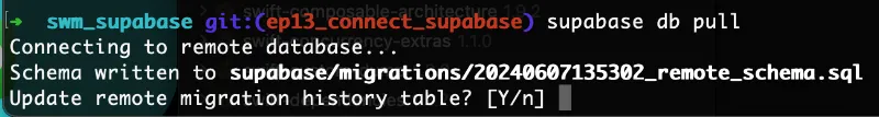 Public Supabase에서 UI로 편하게 Schema 작업을 진행했습니다. 작업 내용을 로컬로 가져오겠습니다.