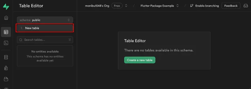 연결된 Public Supabase DB로부터 Schema를 가져옴
