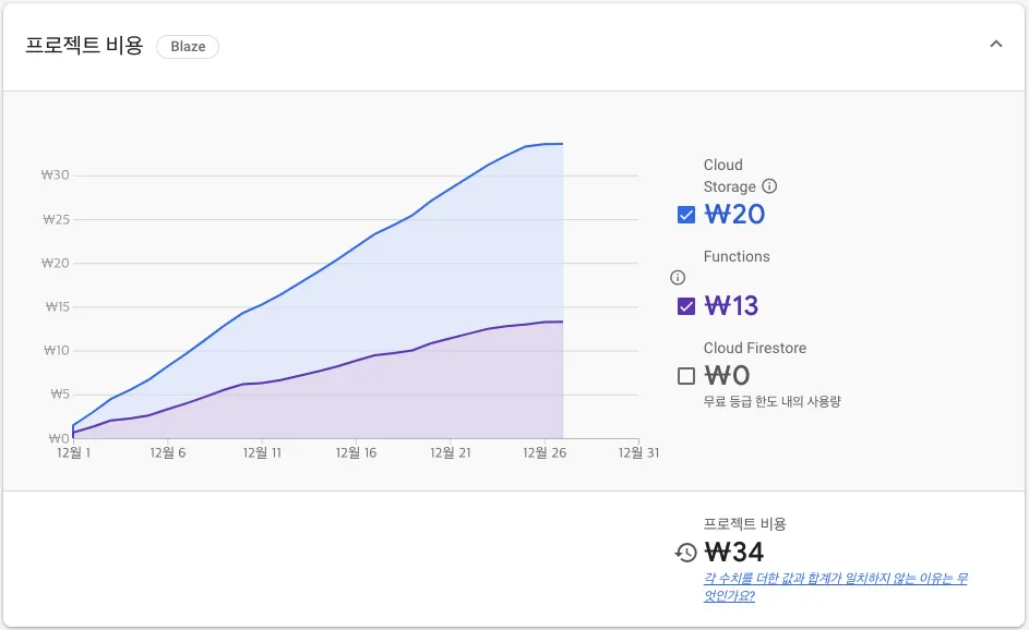 MAU 는 3,000 정도로 높지 않았지만 상당한 API Request, 그리고 그 Request 마다 딸려오는 Firestore request... 다행히 예산 알림 설정을 해두어서 경고 알림을 미리 받을 수 있었고.. 폭탄 과금은 피했습니다. 대충 2만원 언저리 과금 되었던 듯.
