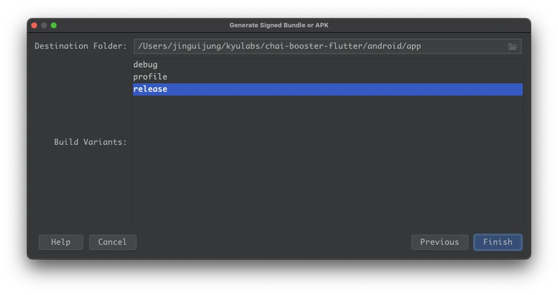 release 를 선택하고 [Finish] 를 선택하면 끝.