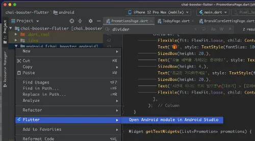 Android Studio 는 이미 열려있지만 Flutter 프로젝트가 열려있죠?
