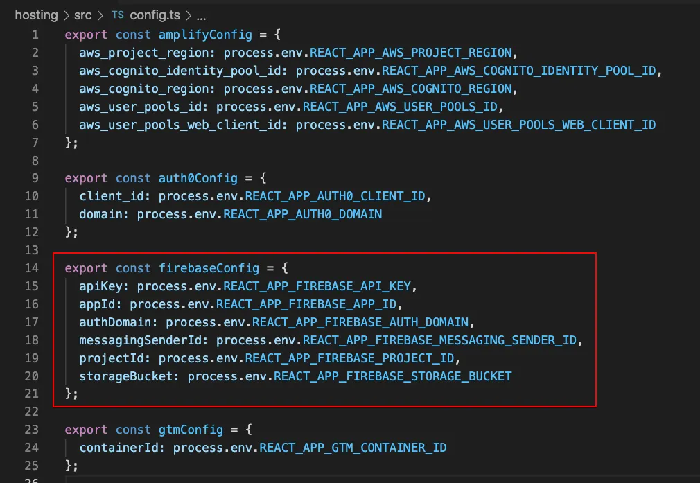 TypeScript 코드에서는 env 를 알 필요 없이 firebaseConfig 변수만 바라보면 된다 :)