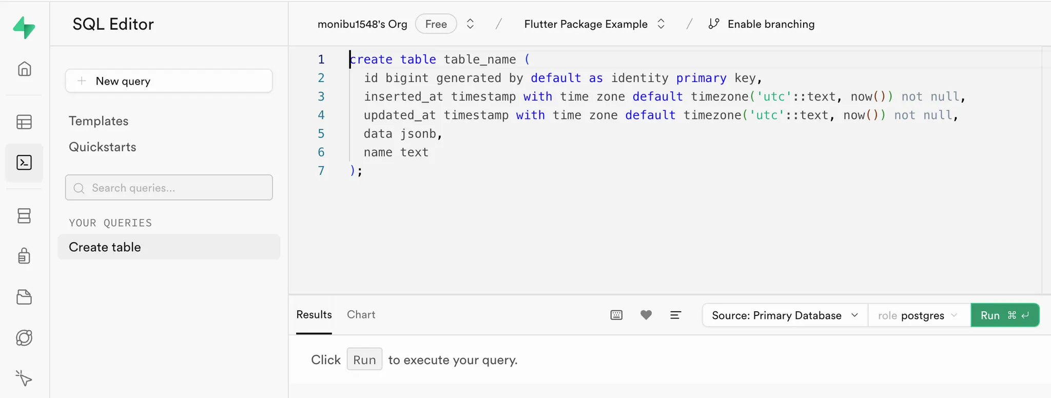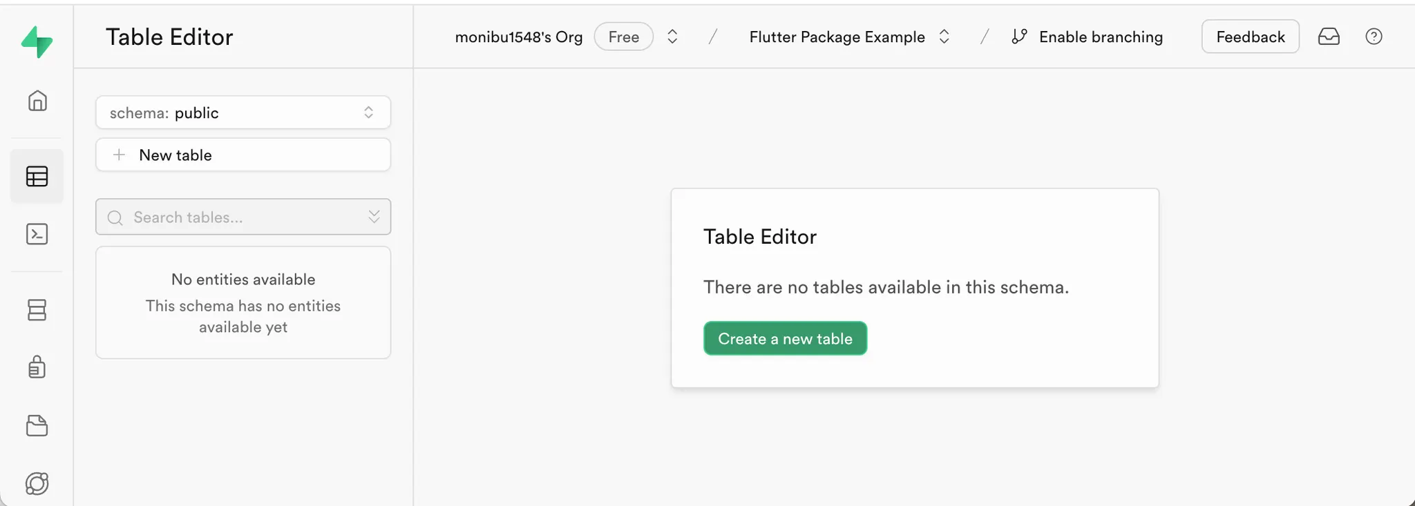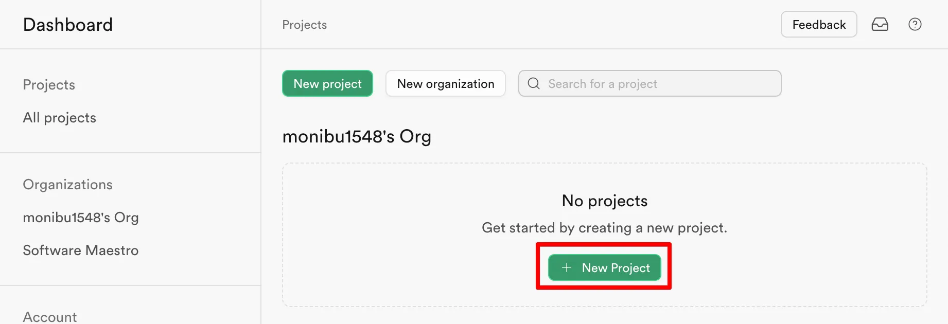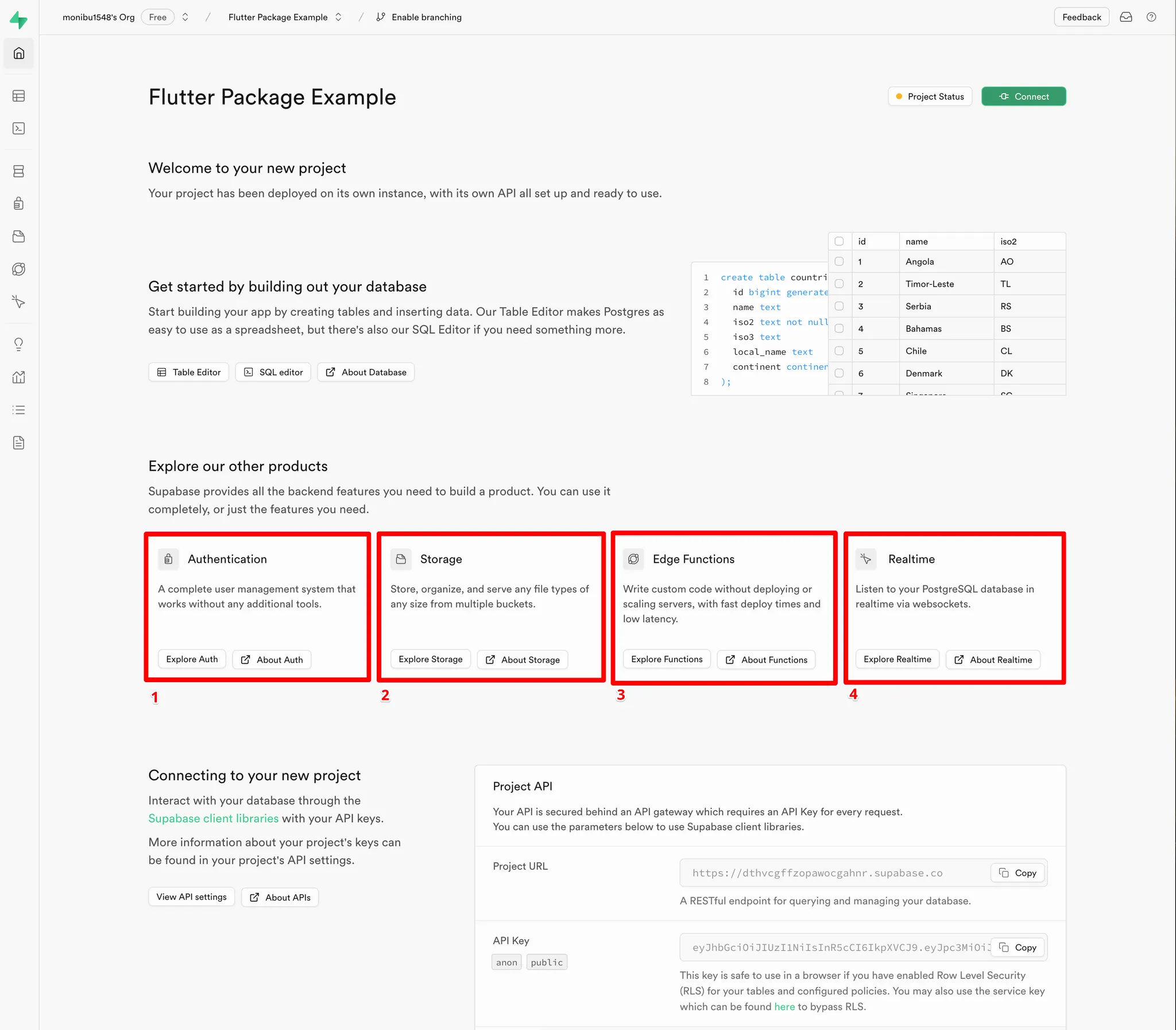 프로젝트 생성 버튼 클릭 후 Supabase가 실제로 호스팅 되기까지 몇 분이 소요될 수 있습니다.