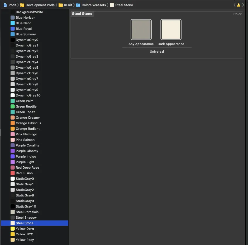 gray scale 색상 (흑-백) 의 경우 light-dark 모두 동일한 컬러를 표현해야 하는 경우가 생각보다 많다. 컬러값을 dynamicGray 와 staticGray 로 구분해서 사용하여 해결할 수 있다.